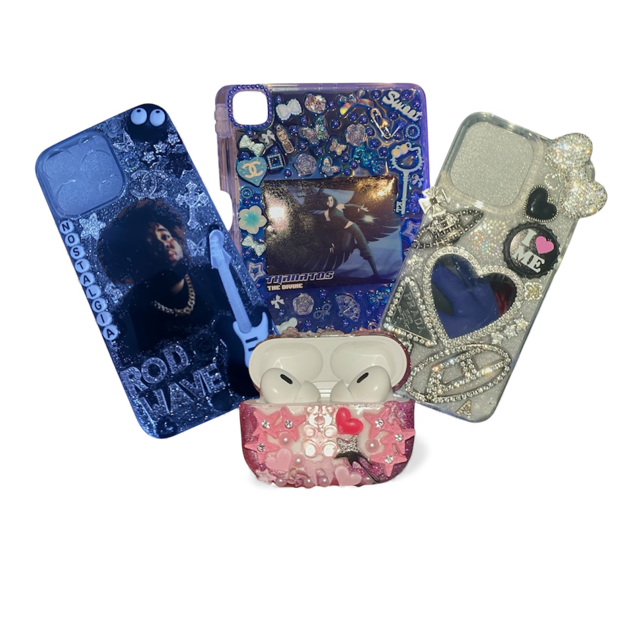 The Deluxe Custom Phone Case lets you submit an inspo image for the exact look you want. This option includes a fully packed design with more charms, more sparkle, and layered detail. Each case is bold, custom-made, and one of a kind, perfect for standing out. 💎✨